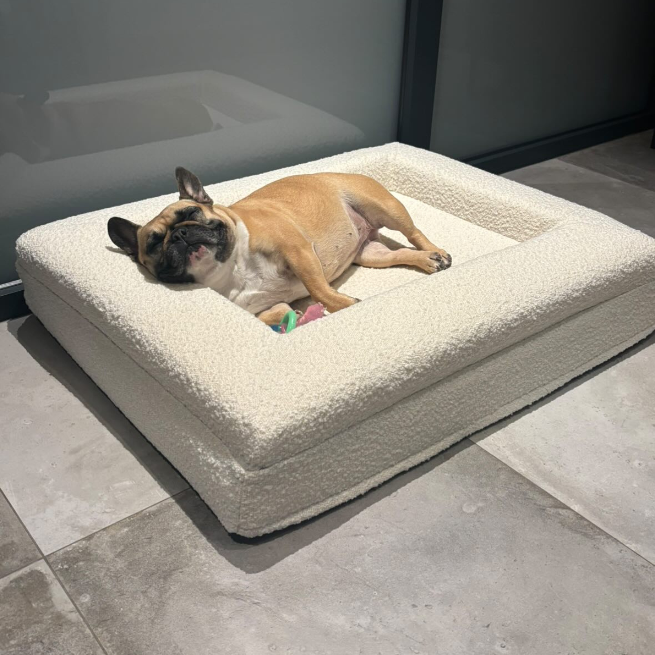 De kwaliteit straalt er vanaf en onze hond geniet zichtbaar. Na meerdere goedkope bedden hebben we eindelijk iets dat echt mooi blijft. Dit is het eerste bed dat onze hond niet kapot krabt. Mijn hond ligt prinsheerlijk en je ziet dat hij comfortabel is. Het past perfect bij ons interieur en staat niet in de weg. De bouclé hoes past mooi bij onze woonkamer. Onze dierenarts raadde een orthopedisch hondenkussen aan en dit werkt perfect.